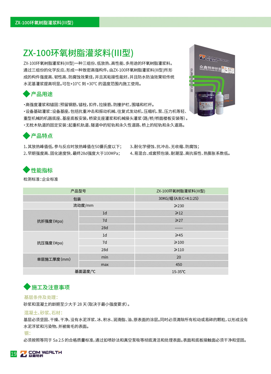 ZX-3/CGM-340高強無收縮灌漿料(超細加固型)