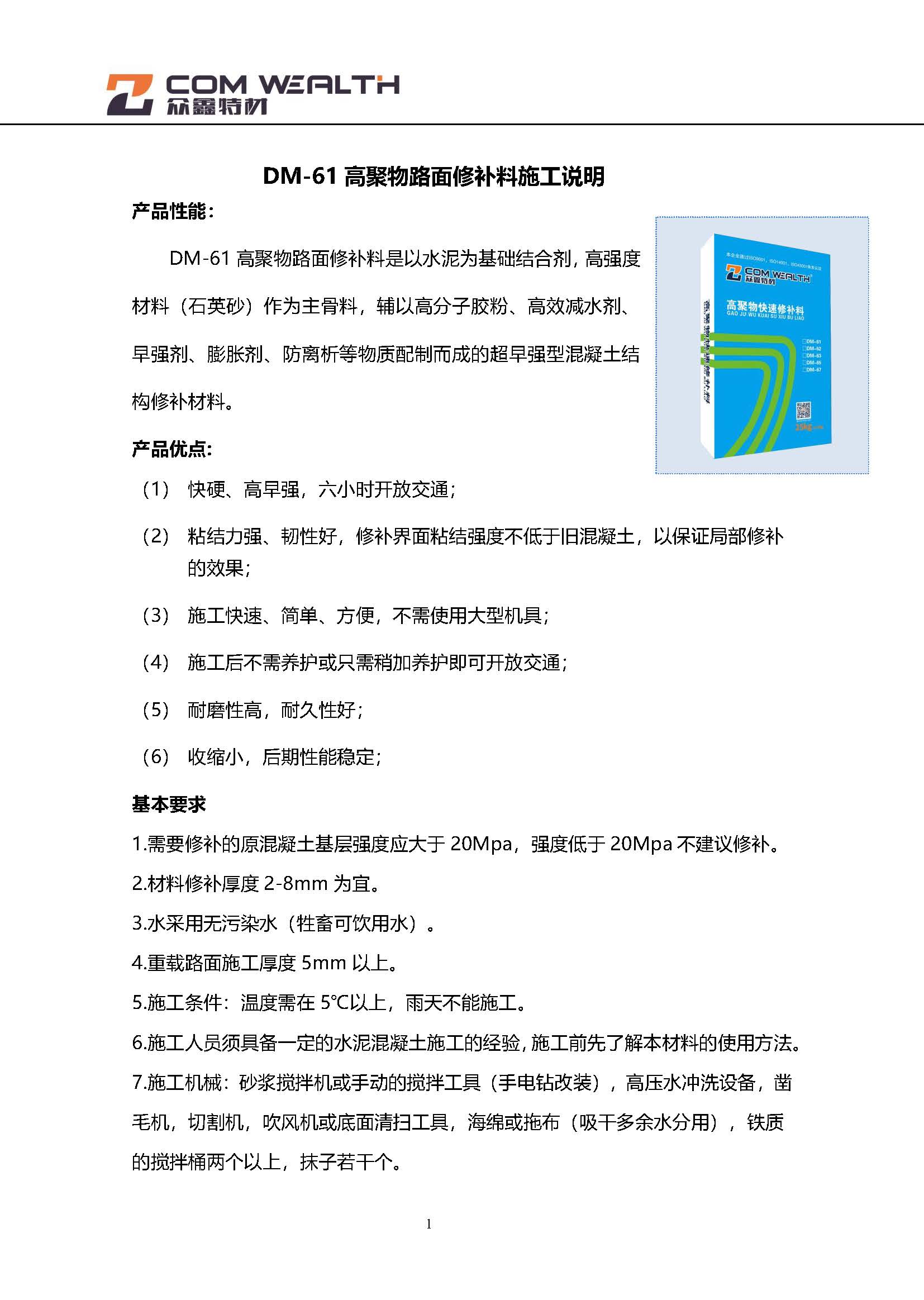 DM-61 高聚物快速修補料
